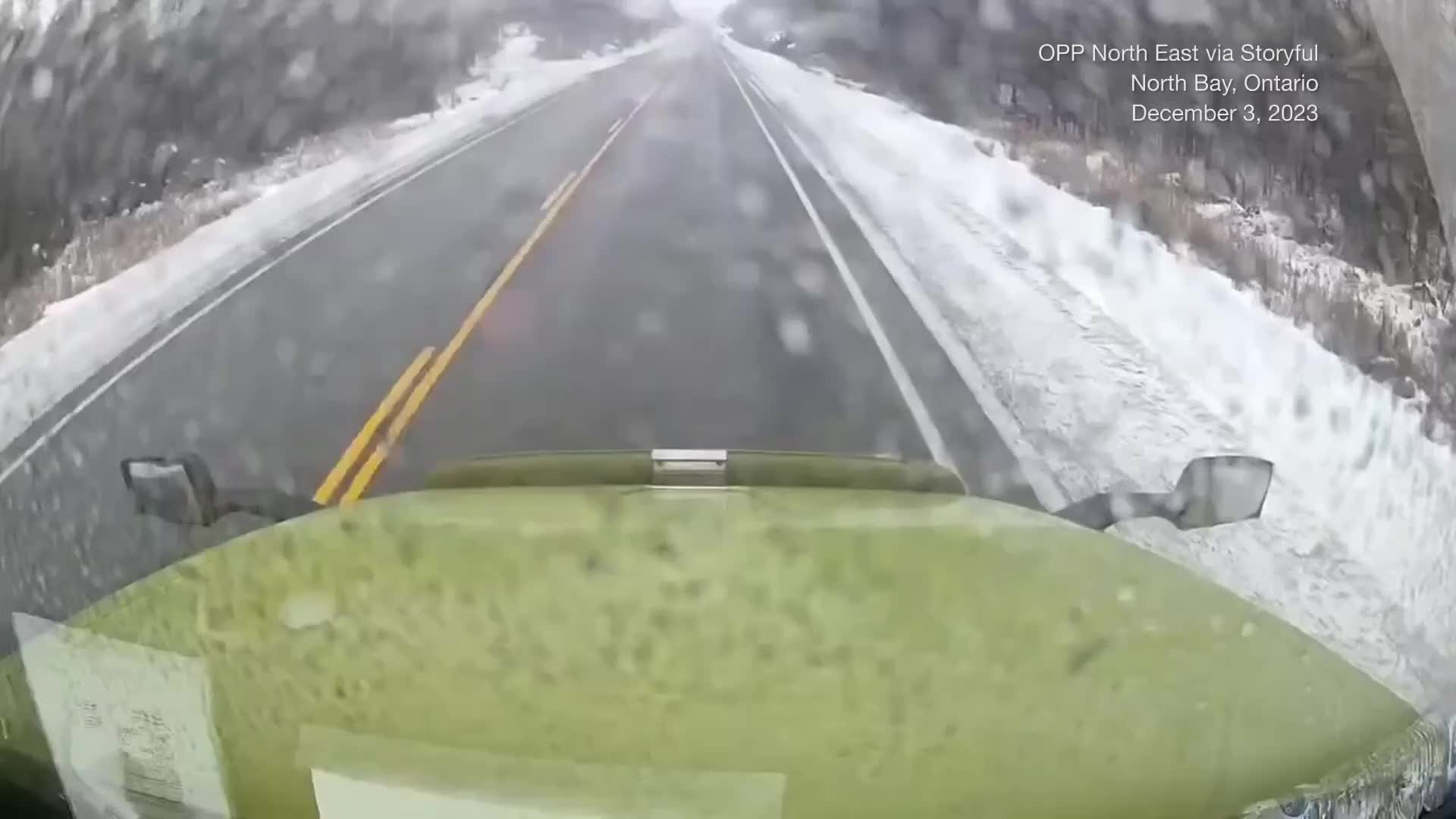 Close Call: Truck Navigates Snowy Highway Like a Pro