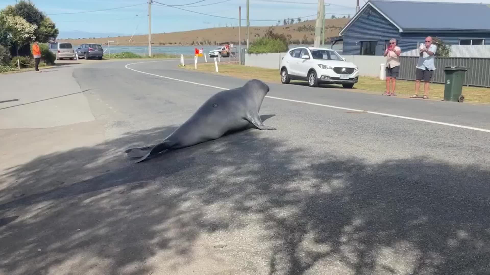 Neil the Seal Takes Stroll on Street, Wows Spectators in with Impressive Moves